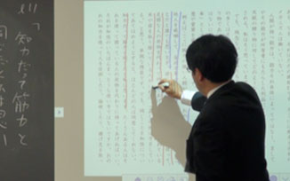授業では「みらスク」で、デジタル教材をテレビ画面に大きく映し出し、ポイントとなる箇所で『書き込みを行う』授業を展開し効果的な指導に役立てている。また、授業以外でも「みらスク」を活用。
